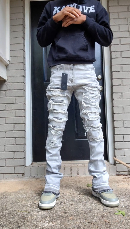 "Stacked" grey ripped washed