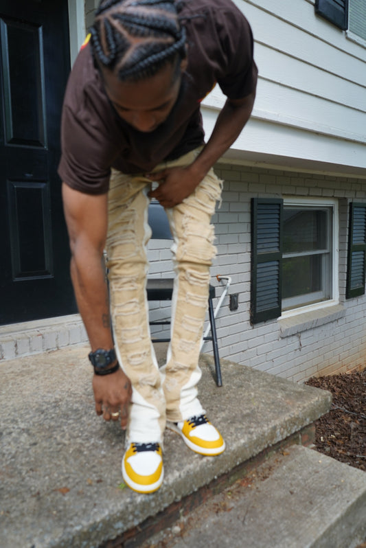 Beige stripe "Stacked Jeans"
